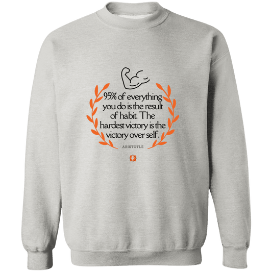 Men's Crewneck Pullover Sweatshirt G180 with inspiring Aristotle quote: A101 - Habits lead to victory