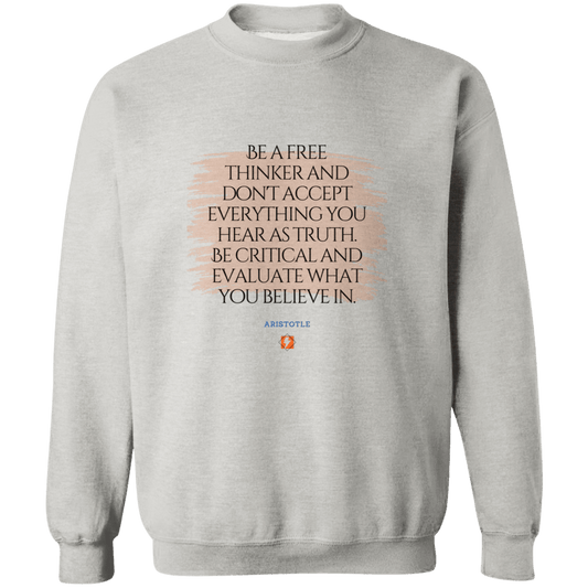 Men's Crewneck Pullover Sweatshirt G180 with inspiring Aristotle quote: A106 - Become a critical thinker