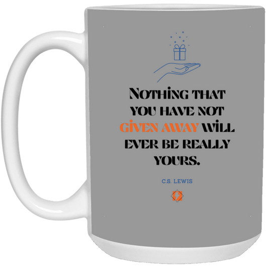 Ceramic Large Mug (15oz) with inspiring Lewis quote: CS111 - Give away to possess itRegular price $17.50 USDRegular priceUnit price per$21.90 USDSale price $17.50 USDSale