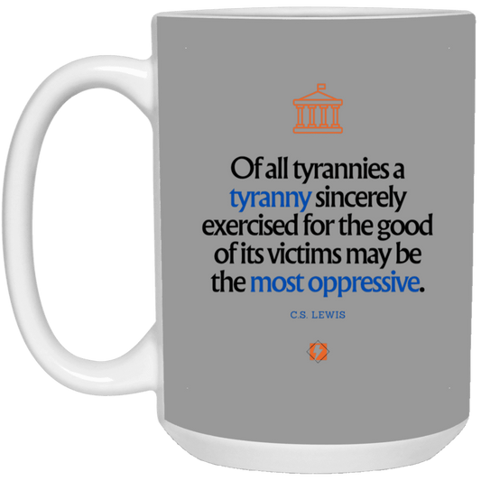 Ceramic Large Mug (15oz) with inspiring Lewis quote: CS112 - Tyranny is amplified by sincere intentionRegular price $17.50 USDRegular priceUnit price per$21.90 USDSale price $17.50 USDSale