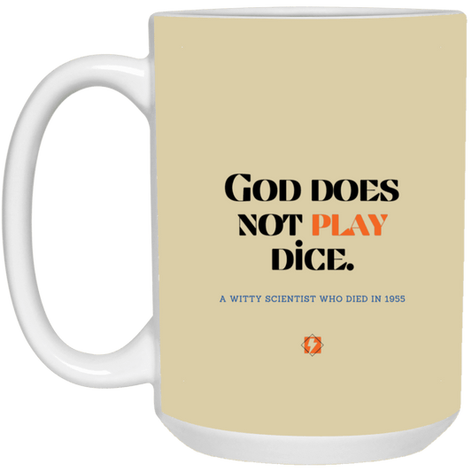 Ceramic Large Mug (15oz) with inspiring Einstein quote: E121 - No dice with GodRegular price $17.50 USDRegular priceUnit price per$21.90 USDSale price $17.50 USDSale