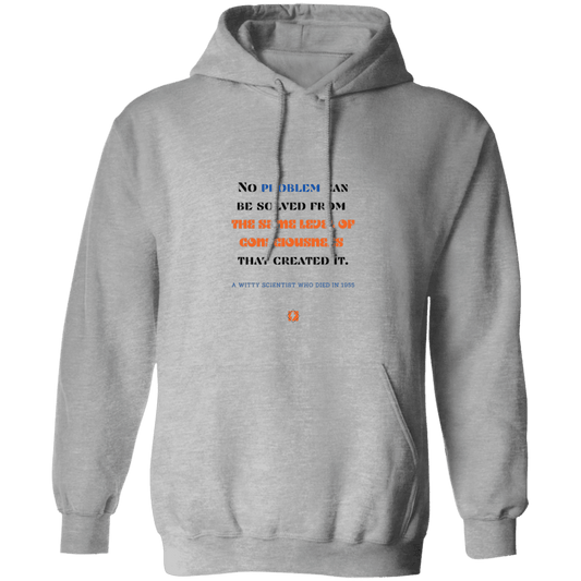 Men's Pullover Hoodie 50/50 cotton/poly Z66x with inspiring Einstein quote: E111 - Problem solving needs fresh thinkingRegular price From $44.99 USDRegular priceUnit price per-