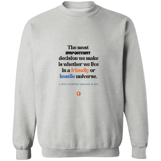 Men's Crewneck Pullover Sweatshirt G180 with inspiring Einstein quote: E115 - Understanding the nature of the universe is keyRegular price From $34.50 USDRegular priceUnit price per-