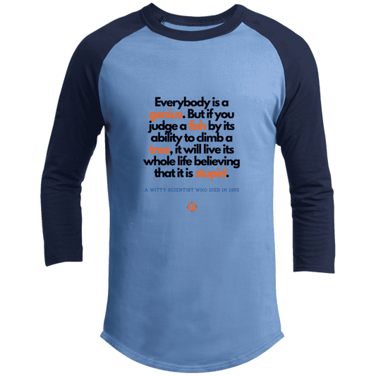 Men's 3/4 Sleeve Raglan T200 with inspiring Einstein quote: E103 - Everybody is a genius