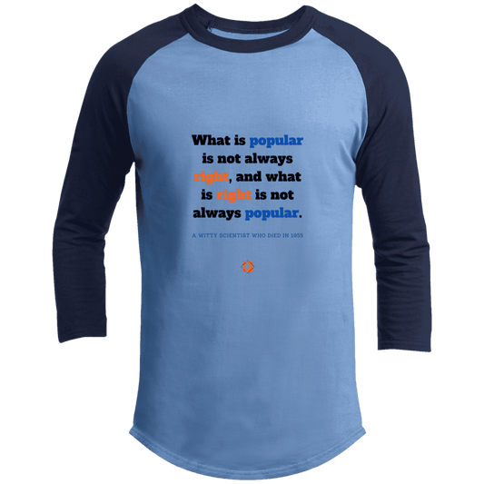 Men's 3/4 Sleeve Raglan T200 with inspiring Einstein quote: E114 - Popular and right are two different things