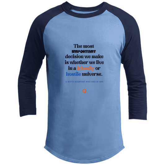 Men's 3/4 Sleeve Raglan T200 with inspiring Einstein quote: E115 - Understanding the nature of the universe is key