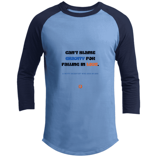 Men's 3/4 Sleeve Raglan T200 with inspiring Einstein quote: E123 - Can't blame gravity for falling in love