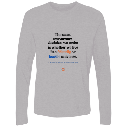 Men's Premium LS Light NL3601 with inspiring Einstein quote: E115 - Understanding the nature of the universe is keyRegular price From $29.50 USDRegular priceUnit price per-