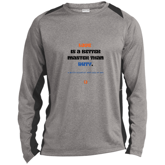 Men's LS Heather Colorblock T-Shirt with inspiring Einstein quote: E126 - Love is a better master than dutyRegular price From $31.50 USDRegular priceUnit price per-