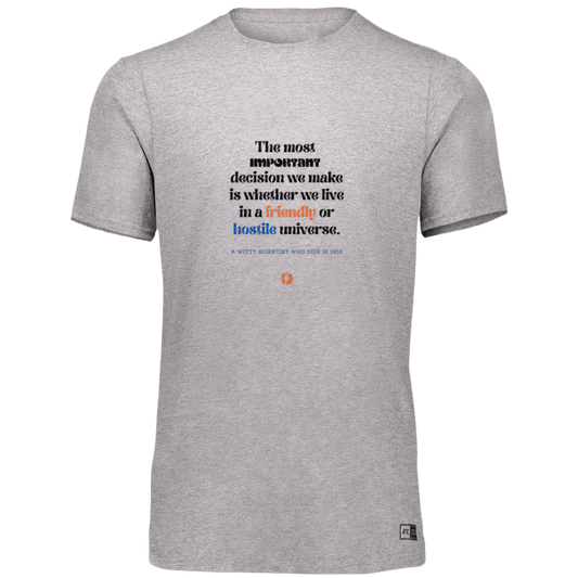 Men’s Dri-Power Odor Protection UPF 30+ T-Shirt with inspiring Einstein quote: E115 - Understanding the nature of the universe is keyRegular price From $21.58 USDRegular priceUnit price per-