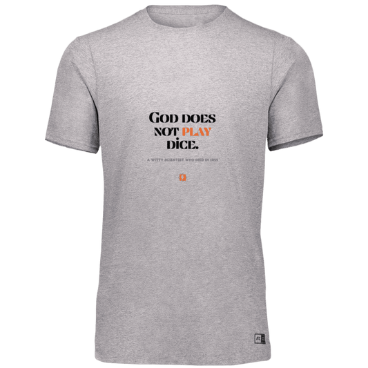 Men’s Dri-Power Odor Protection UPF 30+ T-Shirt with inspiring Einstein quote: E121 - God does not play diceRegular price From $21.58 USDRegular priceUnit price per-