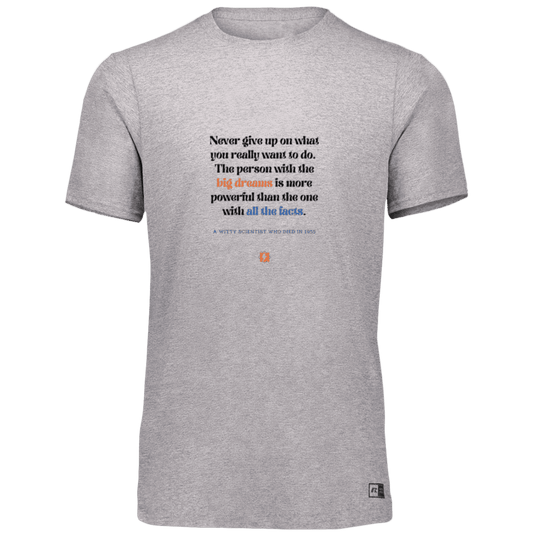 Men’s Dri-Power Odor Protection UPF 30+ T-Shirt with inspiring Einstein quote: E125 - Big dreams trump knowledge and factsRegular price From $21.58 USDRegular priceUnit price per-