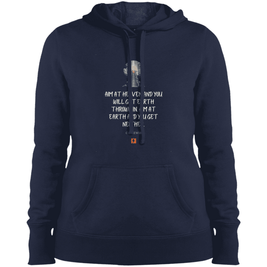 Ladies' Pullover Hooded Sweatshirt with inspiring CS Lewis quote: CS101 - Aim for heaven