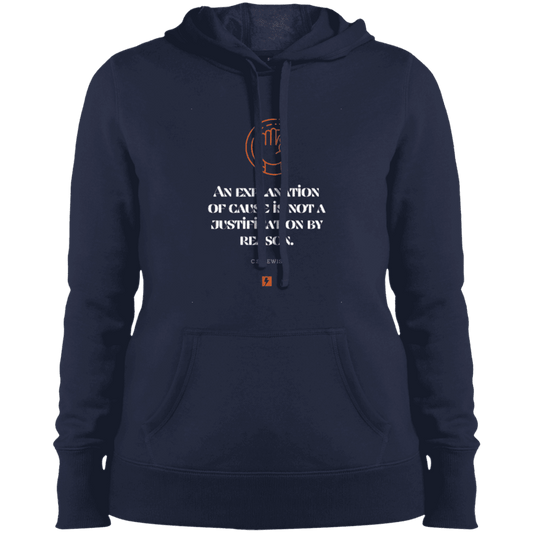 Ladies' Pullover Hooded Sweatshirt with inspiring CS Lewis quote: CS102 - Explanations Vs Justifications