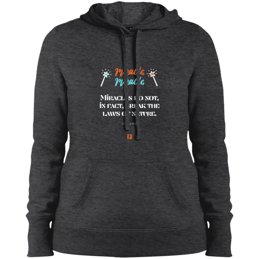 Ladies' Pullover Hooded Sweatshirt with inspiring CS Lewis quote: CS110 - Miracles do not break natural laws
