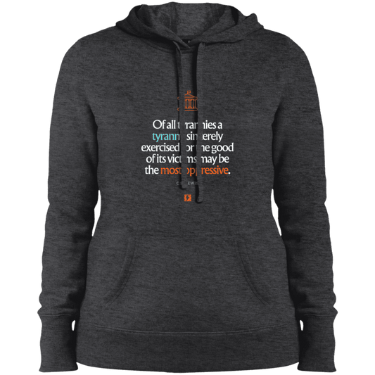 Ladies' Pullover Hooded Sweatshirt with inspiring CS Lewis quote: CS112 - Tyranny is amplified by sincere intention