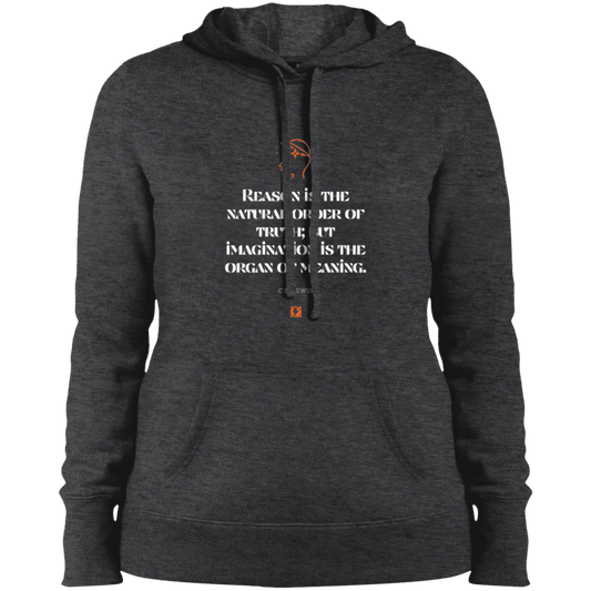Ladies' Pullover Hooded Sweatshirt with inspiring CS Lewis quote: CS113 - Truth and meaning require reason and imagination