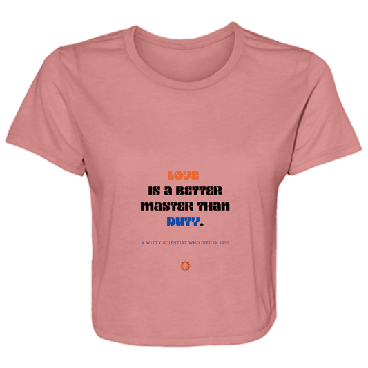 Ladies' Flowy Cropped Tee with inspiring Einstein quote: E126 - Love is a better master than dutyRegular price From $32.99 USDRegular priceUnit price per-