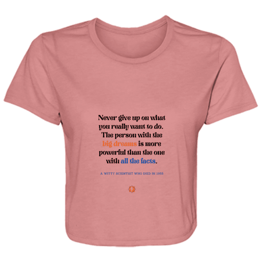 Ladies' Flowy Cropped Tee with inspiring Einstein quote: E125 - Big dreams trump knowledge and factsRegular price From $32.99 USDRegular priceUnit price per-